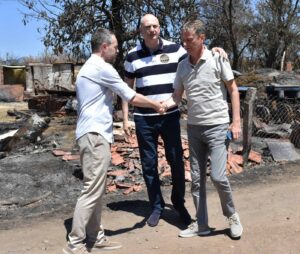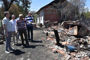 – Налазимо се у селу Бресничић на територији Града Прокупље, код домаћина Радета Ђорђевића који је бранећи своју имовину и свој дом задобио опекотине другог степена. Ту смо да му помогнемо , јер све од чега је живео и хранио своју породицу, изгорело је у пожару. На сву срећу кућа је сачувана, али су потпуно изгореле помоћне зграде, машине и летина коју је имао. Потрудићемо се да му у најкраћем могућем року помогнемо да обнови уништене објекте, као и да путем донација обезбедимо машине које су му потребне да може нормално да настави да живи, ради и да заједно са сином и супругом развија своје домаћинство. Ватрена стихија опустошила је овај крај, права је срећа да су се људи спасили и да нема жртава. Данас смо ту са људима овог лепог топличког краја да их обиђемо и будемо подршка, да разговарамо, да им упутимо ургентну помоћ како би могли да се врате у свакодневни живот, рекао је министар Дарко Глишић. Ових дана прикупљамо извештаје из 16 јединица локалне самоуправе, из пет градова и 11 општина, међу којима је и Град Прокупље на чијој територији се данас налазимо. Очекујемо да њихове комисије у што краћем року заврше посао и да заједно са људима из Министастава за јавна улагања и Владе Србије, погледамо те извештаје и припремимо их за фазу реализације, односно за њихову категоризацију и почетак исплате накнаде штете. Док се тај процес не заврши, на нама је да обилазимо домаћинства која су претрпела штету од пожара и да видимо шта можемо да им помогнемо, казао је министар Глишић.