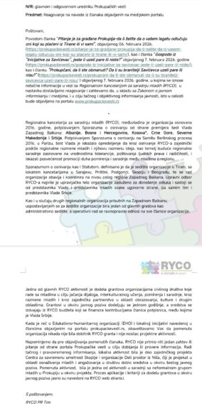 Organizacija „Ryco“ potvrdila pisanje naseg portala – da je akcija „(D)oživi Savićevac” plaćeni projekat. Evo i citata iz pisma koji to potvrđuje: „Radi tačnog i pravovremenog informisanja, lokalna aktivnost bila je deo zajedničkog projekta Centra za savremenu umetnost Skoplje i organizacije Deli prostor iz Niša, čiji je projekat u oblasti osnaživanja mladih i angažovanja u društvu dobio sredstva u okviru šestog javnog poziva. Pomenuta aktivnost, bila je jedna od aktivnosti u saradnji sa neformalnom grupom mladih u Prokuplju u okviru projekta“. U nastavku možete pročitati njihovo pismo u celosti.